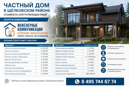 Услуги компании «Инженерные коммуникации отопление водоснабжение: ремонт, монтаж, обслуживание» для частного дома в Щёлковском районе — полный спектр работ под ключ