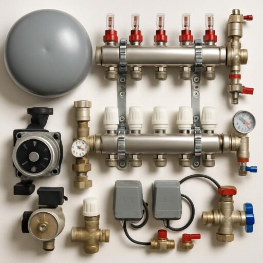В основе любой коллекторной системы лежат определённые элементы: сам распределительный коллектор и коллекторные группы, расходомеры и балансировочные вентили, сервоприводы и термостаты, циркуляционные насосы и насосные группы, гидравлическая стрелка (разделитель), обратные клапаны, воздухоотводчики и фильтры, манометры и термометры, запорная арматура, а также компоновочные элементы — шкафы, кронштейны и теплоизоляция магистралей. Каждый из этих компонентов влияет на надёжность, управляемость и энергоэффективность системы.