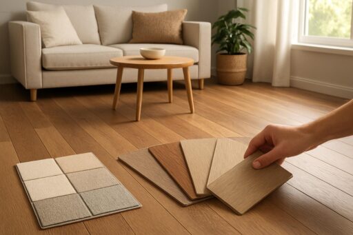 Частая ошибка — выбирать покрытие по идеальной картинке в магазине и не проверять, как оно будет выглядеть у вас дома. Возьмите несколько образцов и посмотрите их при дневном свете, вечером при лампах, с мебелью и при открытых/закрытых шторах. Обращайте внимание не только на рисунок, но и на отражение света: глянец подчёркивает следы, а матовая текстура легче маскирует мелкие повреждения.