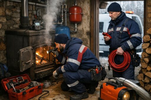 Аварийная служба выполняет срочную диагностику на месте, проводит прочистку и дефектацию дымохода, устраняет неисправности топки и уплотнений, выполняет временные и капитальные ремонты, проводит замеры концентрации CO и устраняет источники утечек. Важная часть работы — организационные меры безопасности: временная приостановка эксплуатации, рекомендации по проветриванию и эвакуации при необходимости, а также консультации по дальнейшей профилактике и правильной эксплуатации дровяной системы.
