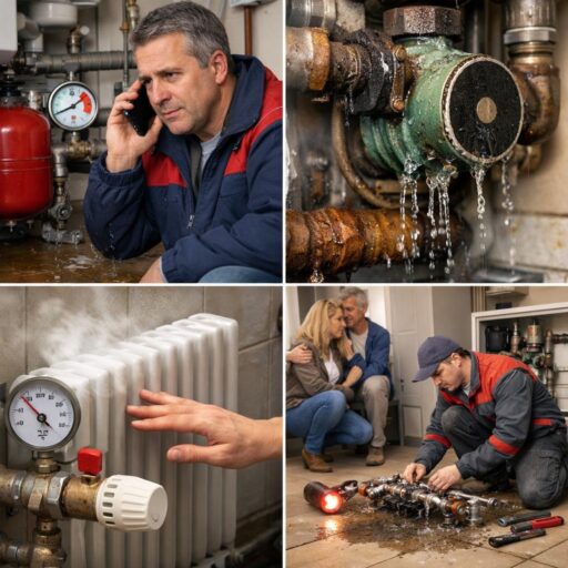 В следующих разделах мы разберём типичные симптомы поломок — падение давления в системе, шумы или вибрация насосов, видимые протечки, отсутствие циркуляции теплоносителя и отказ газового или электрического котла — и опишем простой алгоритм действий до приезда мастера: обеспечение безопасности, отключение источников питания и подачи топлива, локализация протечек и минимальные временные меры, которые помогут снизить ущерб.