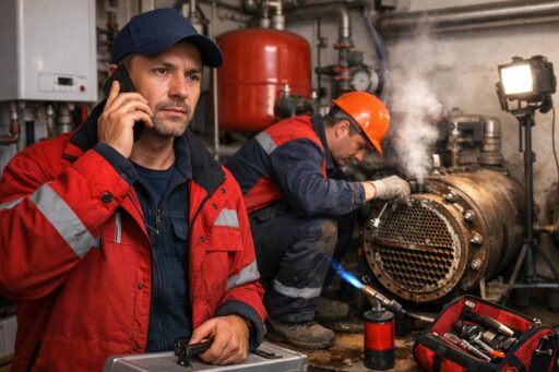 Качественное обслуживание включает диагностику, промывку и очистку теплообменников, проверку уплотнений и соединений, регулировку автоматики и тестирование на герметичность. Экстренный ремонт требует опыта специалистов, наличия инструментов и запасных частей, а также прозрачной оценки рисков и сроков восстановления работы системы.
