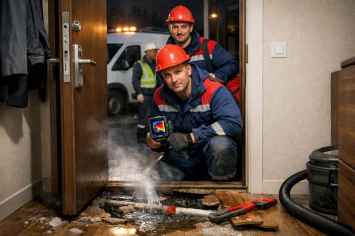 Аварийная служба при протечке труб отопления в полу. Протечка труб отопления в полу — одна из самых опасных и непредсказуемых бытовых аварий: вода быстро распространяется под покрытием, повреждая стяжку, перекрытия и электрическую проводку, создавая риск плесени и коррозии конструкций. Оперативное вмешательство аварийной службы критически важно для минимизации ущерба и сохранения безопасности в помещении. Аварийная служба