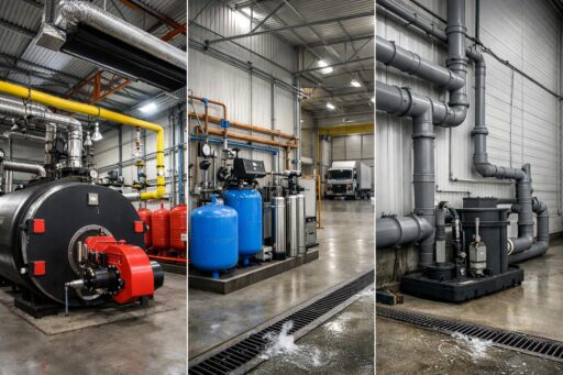 Ангары предъявляют специфические требования: большие внутренние объемы и значительные теплопотери, высокая вероятность образования конденсата и вредоносной влажности, наличие масляных и химических загрязнений в стоках, удаленность объектов и сезонные низкие температуры. Эти особенности диктуют выбор нестандартных технических решений — мощных, но экономичных тепловых систем, морозостойких водопроводных узлов и эффективных систем удаления и очистки стоков.