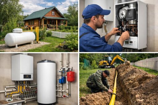 Монтаж и оформление. Любая работа с газом требует проектной документации и допуска специализированной газовой организации. Последовательность стандартная: получение техусловий и проект, согласование с газовой службой, подготовка подводки и установка котла/газгольдера, проведение пусконаладочных работ с оформлением актов и вводом в эксплуатацию. Монтаж должны выполнять лицензированные специалисты, обязательна проверка вентиляции, дымохода и установка средств контроля утечки при необходимости.