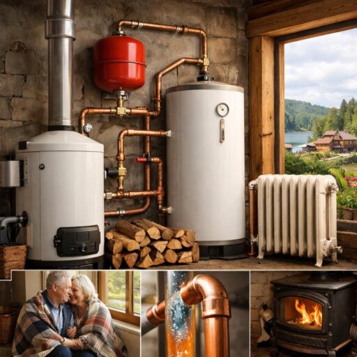 Такая схема отлично сочетается с твердотопливными котлами. Пламя в печи стабильно поддерживает циркуляцию без дополнительных устройств. Для владельцев дач это практичный выбор на сезонное использование.