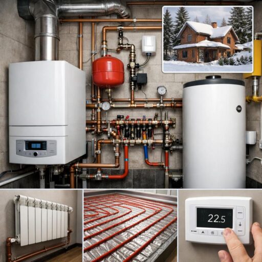 Выбор затронет отличия конденсационных и обычных котлов, одно- и двухконтурных схем, подбор мощности по теплопотерям и оптимальные варианты теплораспределения — радиаторы, теплые полы, комбинированные системы. Установка охватит порядок получения разрешений, подключение к магистральному газу или использование баллонного/автономного решения, монтаж дымохода и обязательную проверку и регулировку системы сертифицированными специалистами.
