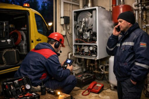 Третий шаг — вызов профессиональной помощи. Позвоните в аварийную службу котельной или обслуживающую организацию, а при утечке газа — также в газовую службу и при необходимости в пожарную охрану. При звонке кратко опишите симптомы (запах газа, вода, отсутствие отопления, дым, сильный шум), укажите адрес и доступ к котельной, а затем оставайтесь на безопасном расстоянии до прибытия специалистов.