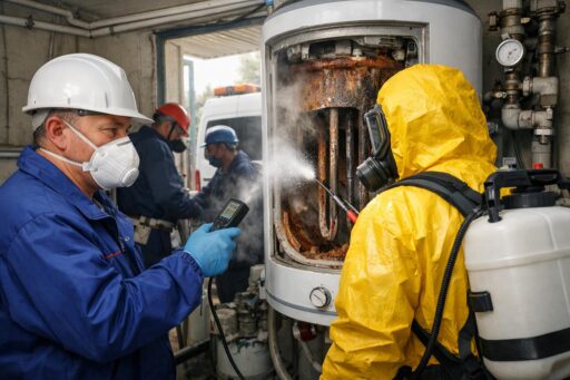 Выезд бригады начинается с визуального осмотра и отбора проб для экспресс‑теста. Затем проводят инструментальную оценку состояния теплообмена и наличия биопленки. По результатам подбирают тактику: прогрев воды, промывка с механической очисткой или целевая химическая обработка. Все этапы фиксируются в акте выполненных работ.