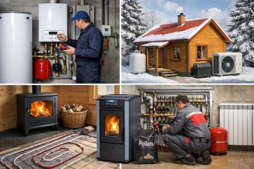 Обслуживание и безопасность: в газовых установках обязательно регулярное техобслуживание и дымоходы по нормам; при твердом топливе — правильное хранение и уход за дымоходом; для электрических систем — качественная проводка и защитные устройства. Подумайте о резервном источнике (электричество или печь) на случай перебоев в подаче основного топлива.