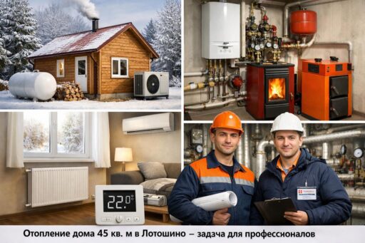 Отопление дома 45 кв. м в Лотошино требует продуманного подхода: здесь холодный климат Московской области диктует экономичность, надёжность и простоту обслуживания. Небольшая площадь упрощает выбор системы, но одновременно повышает требования к правильному подбору мощности, учёту теплопотерь и оптимизации затрат на топливо и установку.