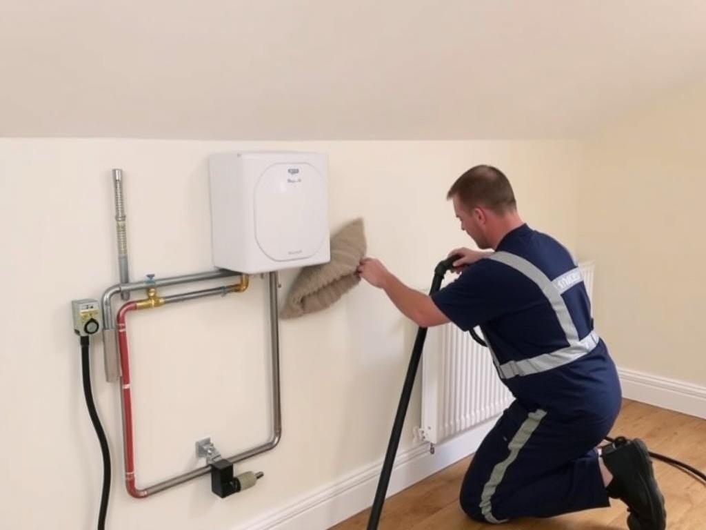 С помощью специального компрессора, работающего в импульсном режиме, в трубы подаются воду, и дополнительно — воздух под давлением до 6 кгс/см2, Высокая скорость потока и импульсный режим работы компрессора создаёт в радиаторах и трубах участки турбулентности водо-воздушной смеси. Они взрыхляют осадок и отложения, которые просто смываются током воды. Продолжительность очистки оценивается визуально: вода, идущая на сброс, должна оставаться чистой.