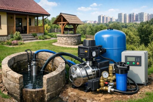Водоснабжение дома в Одинцово из колодца: виды автоматики и как выбрать. Водоснабжение частного дома из колодца в Одинцово — задача, требующая не только выбора насоса, но и грамотной автоматизации системы. От правильной схемы управления зависит стабильность давления в кранах, защита оборудования от сухого хода и замерзания, экономия электроэнергии и удобство эксплуатации в течение всего года.