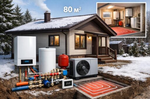 Для предварительной оценки мощности чаще используют ориентир 100–150 Вт на квадратный метр в зависимости от качества утепления и высоты потолков — для 80 кв. м это примерно 8–12 кВт. Точный расчет выполнил бы проектировщик с учётом конструкции стен, окон, ориентации здания и местных климатических данных, но уже на этапе планирования важно понимать порядок величин и возможные резервы.