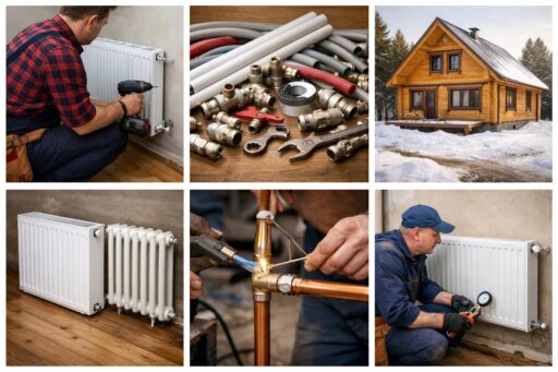 Материалы разбивают на несколько основных групп. Включают сам радиатор, арматуру, трубы и крепёж. Отдельно учитывают теплоизоляцию и отделочные элементы. Нельзя забывать про расходные материалы и герметики.