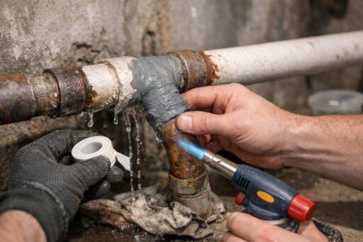 Причины появления течей разнообразны: ослабление компрессионных гаек, износ уплотнительных элементов, неправильная сборка при монтаже, коррозия старых металлических труб, движение труб при сезонных перепадах температуры и дефекты в резьбовых или пайных соединениях. В зависимости от материала труб (сталь, медь, полипропилен, PEX) и типа соединения (резьбовое, компрессионное, пайка, сварка) применяются разные методы ремонта — от временных аварийных заделок до капитальной замены участка магистрали.