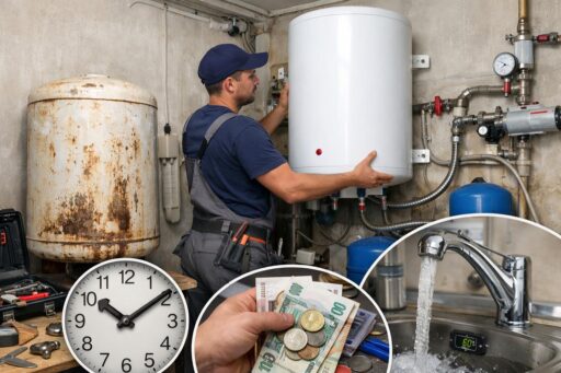 Ориентировочные затраты (включая материалы и работу) зависят от выбранного оборудования и объема работ: простая замена электрического бойлера — примерно 10 000–40 000 руб.; установка настенного газового котла с пусконаладкой — ориентировочно 40 000–150 000 руб. в зависимости от мощности и бренда; замена стояков и частичная замена разводки в квартире — 20 000–80 000 руб.; полная замена водопровода и монтаж новой системы отопления в доме — от 80 000 до 300 000 руб. и выше. Дополнительные расходы могут включать проектные работы, согласования, подключение к газу, монтаж дымохода и устранение дефектов стен/пола после работ.