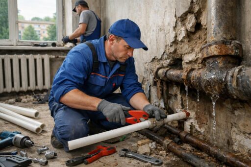 Прокладки и внутренние слои труб изнашиваются постепенно. Сначала появляются мелкие подтёки и шумы в стояках. Затем коррозия и промерзание приводят к трещинам. Ожидание увеличивает масштаб повреждений и стоимость ремонта.