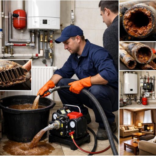 Под промывкой понимается удаление шлама, ржавчины, солевых отложений и накипи из труб, радиаторов и котлов. Эти отложения образуются естественно в процессе эксплуатации, снижая теплоотдачу, создавая шумы, засоры и вынуждая циркуляционные насосы работать с повышенной нагрузкой. В частном доме такие проблемы приводят не только к снижению комфорта, но и к росту счетов за отопление и риску преждевременных поломок.