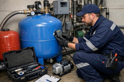 Профессиональное обслуживание включает комплекс мероприятий: визуальный осмотр и проверка герметичности, измерение и регулировка предзарядного давления, тестирование мембраны и замена при необходимости, чистка и промывка системы, проверка автоматики и реле давления, а также антикоррозионная обработка и документирование работ. В условиях холодного климата особое внимание уделяется защите от промерзания и правильной гидравлической интеграции с насосной станцией.