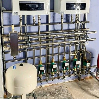 - Монтаж котельной, тёплых полов и радиаторной разводки.