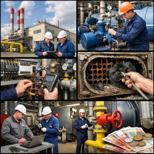 На стоимость влияют тип котельной (газовая, твердотопливная, дизельная, электрическая), мощность установки, интенсивность использования, необходимость водоподготовки и система автоматизации, а также требования по лицензированию и отчетности. Важную роль играет выбранный формат обслуживания: единичный сервисный выезд, сезонное ТО, годовой договор с плановыми работами и аварийным обслуживанием или комплексный аутсорсинг с полным сопровождением и обеспечением запасными частями и топливом.