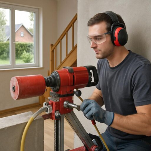 Важной областью является прокладка кабелей и труб через стены и перекрытия. Технология позволяет обойтись без крупных разрушений и снизить затраты на восстановительные работы после монтажа. Особенно это важно при работе в жилых помещениях, где важна чистота и минимальный уровень шума.