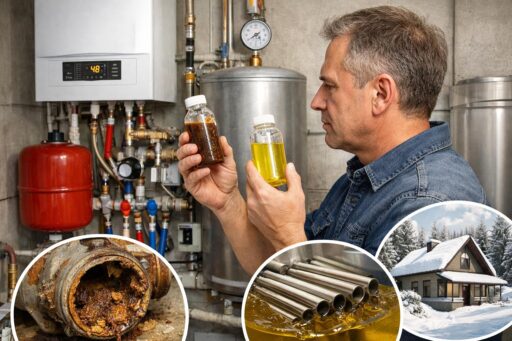 Причины деградации просты и предсказуемы. Ингибиторы коррозии теряют активность через несколько лет. Растворённый кислород ускоряет окисление металлических деталей. Минеральные отложения уменьшают пропускную способность труб и радиаторов. Биоплёнки нарушают теплообмен и создают запахи в системе.
