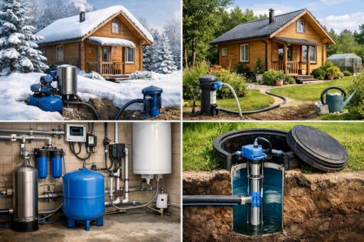 Надежные решения включают проверенные источники (скважина или колодец), правильно подобранное насосное оборудование, системы накопления и фильтрации, а также продуманную гидроизоляцию и теплоизоляцию трубопроводов. Важную роль играют автоматизация управления подачей воды и резервные источники электропитания, которые обеспечат бесперебойную работу даже при отключениях света или сильных морозах.