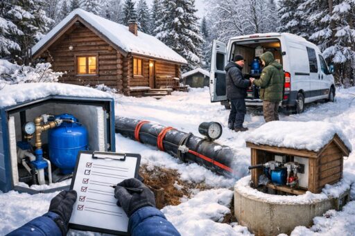 Осмотр включает несколько обязательных этапов. Мы проверим глубину заложения труб, качество изоляции и состояние вводного коллектора. Оценим работу скважинного насоса и систему автоматики. Проверим наличие протечек и риски замерзания в узлах разбора.