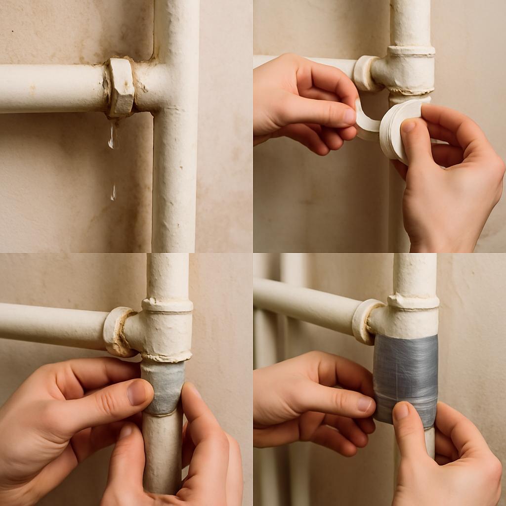 Один из самых простых и быстрых способов — применение уплотнительной ленты или сантехнического скотча. Их обматывают вокруг поврежденного участка в несколько слоев. Такое решение подходит для временного предотвращения протечек, особенно если трещина небольшая и находится в доступном месте.