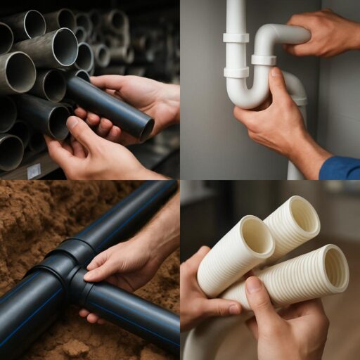 Пластиковые трубы завоевывают популярность благодаря легкости и стойкости к химическим веществам. Полиэтилен и полипропилен — самые популярные полимеры. Они не ржавеют, просто монтируются и подходят для холодной и горячей воды. Для канализации часто берут жесткий ПВХ, так как он устойчив к механическим повреждениям.