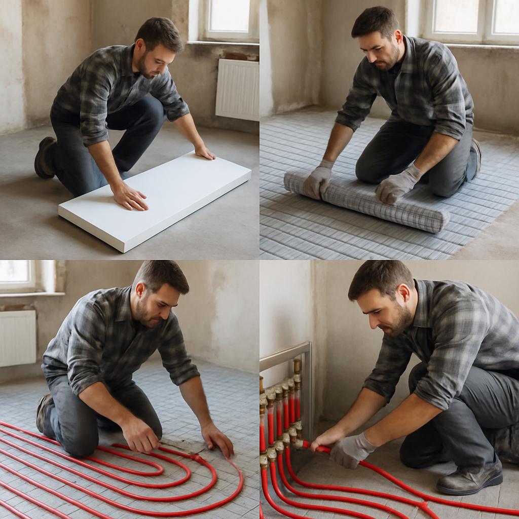 Правильная укладка теплоизоляционного слоя является ключевым этапом успешного монтажа тёплого пола. Она обеспечивает минимальные теплопотери и улучшает энергоэффективность системы. Для этого используют материалы с низкой теплопроводностью, такие как пенополистирол, экструдированный пенополистирол или пробковая плита.
