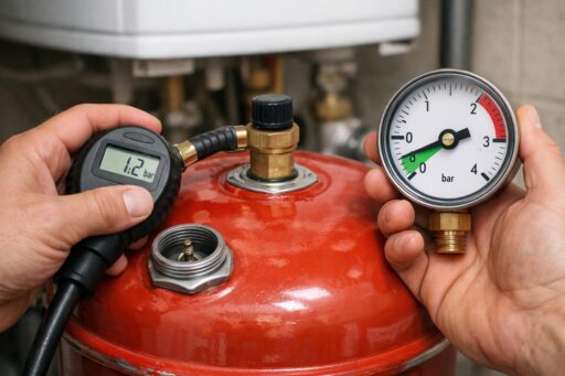 Правильный запас воздуха в расширительном бачке определяет стабильную работу отопления. Обычно заводской преднадув при накачке равен статическому давлению системы в холодном состоянии. Для частного дома это чаще всего 0.9–1.2 бар. Для многоэтажных объектов рекомендуется повышенный преднадув согласно высоте контура.