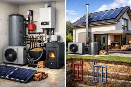 Сочетание твердого топлива и солнечных коллекторов позволяет разумно расходовать ресурсы. Солнечные панели подогревают воду в тёплое время года. Котёл на дровах или пеллетах обеспечивает тепло в холодные периоды. Система распределяет нагрузку по источникам, увеличивая срок службы оборудования.