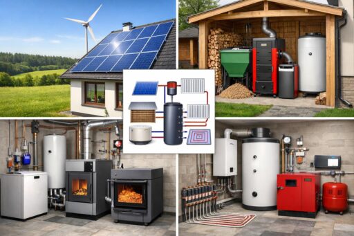 Под комбинированным отоплением понимают системы, которые объединяют два и более источника тепла: электрические котлы и ТЭНы, твердотопливные или пеллетные котлы, тепловые насосы, солнечные коллекторы, а также буферные баки и системы управления. Грамотно спроектированная комбинация позволяет использовать преимущества каждого источника — дешевизну и автономность твердого топлива, стабильность электричества, высокую эффективность тепловых насосов и сезонную поддержку солнечной энергии.