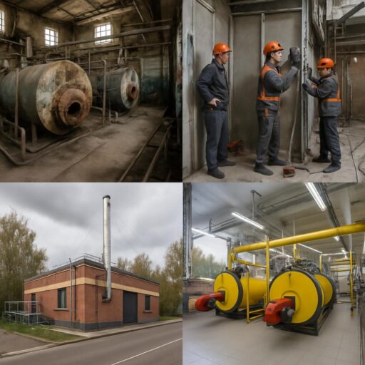 Ремонт проводится поэтапно: диагностика и демонтаж старого оборудования, монтаж новых котлов и вспомогательных узлов, прокладка и замена магистралей, внедрение систем автоматического контроля и балансировки. Каждый этап сопровождается техническим контролем и стендовыми испытаниями, что позволяет своевременно устранять дефекты и оптимизировать параметры работы котельной перед вводом в эксплуатацию.