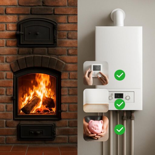 Безопасность: это не только меньше топлива, но и меньше опасности от искр и угарного газа, как это бывает с открытыми каминами и старыми печами. Современные котлы оснащены датчиками и системами защиты, которые минимизируют риски. Особенно важно, если в доме есть дети или пожилые люди.