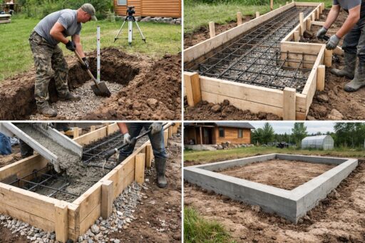 В этом материале собраны ключевые принципы и последовательность работ: определение типа грунта и глубины заложения, расчет нагрузок, выбор подсыпки и армирования, устройство подушки, опалубки и монолитной плиты или ленточного основания, а также вопросы дренажа и гидроизоляции. Особое внимание уделено простым и проверенным приёмам, которые можно применить без привлечения спецтехники, сохранив при этом прочность и долговечность конструкции.
