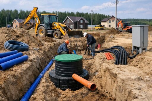 Монтаж коммуникаций в ДНП «Покровские дали» (Деденево, Дмитровский р‑н, Московская обл.) — ключевой этап развития инженерной инфраструктуры коттеджного поселка, от которого напрямую зависят комфорт, безопасность и инвестиционная привлекательность объекта. Введение в строй надежных сетей водоснабжения, канализации, электроснабжения, газоснабжения и телекоммуникаций обеспечивает возможность проживания круглый год и создаёт основу для дальнейшей благоустройства территорий и выполнения нормативных требований.