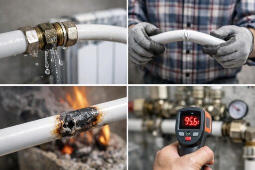 Практические меры снижения риска простые и эффективные. Снизьте температуру подачи при возможности. Установите расширительные компенсаторы и предохранительный клапан. Контролируйте давление подпитки и циклы включения котла. При сомнениях выбирайте материалы с большим допуском по температуре.