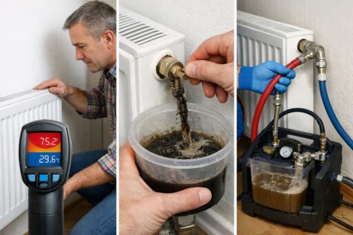 Быстрые полевые проверки, которые выполняет жилец. Пощупайте подводящую и отводящую трубы возле батареи. Если вход сильно горячий, а выход тёплый, вероятен засор. Если оба трубопровода холодны, причина в подаче или регулировке.