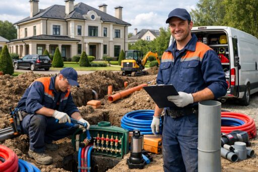 Что входит в смету. В смету обычно закладывают: материалы (трубы, фитинги, колодцы), земляные работы и обратная засыпка, монтаж оборудования и подключение, пусконаладочные работы и испытания, проектные и согласовательные работы (при необходимости), доставка и подъём оборудования, восстановление дорожного покрытия и ландшафта, а также непредвиденные расходы (резерв 10–20%).