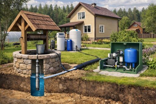 Обслуживание и профилактика: регулярный анализ качества воды, промывка и дезинфекция колодца/фильтров, проверка работы насоса и защитных устройств продлевают срок службы системы и сохраняют качество воды. Особое внимание — защите от проникновения поверхностных стоков и герметичности устья колодца.