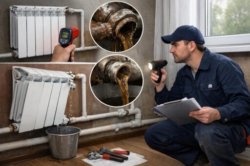 Сначала проводим оперативную диагностику. Используем тепловизор для поиска холодных зон и утечек. Применяем эндоскоп для проверки внутреннего состояния труб. Делаем гидравлические испытания и анализ состава теплоносителя.