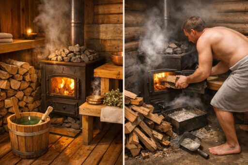 Печь для бани создает уникальную атмосферу и глубокое тепло. Запах дров и тихий треск придают парной характер. Для многих это главный аргумент в пользу дровяной печи.