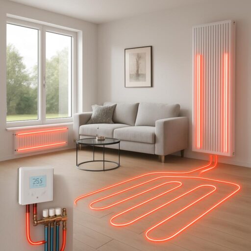 Тёплые полы KERMI заслуживают особого упоминания. Они идеально подходят для зон с повышенной влажностью, например, ванной или кухни. При этом сохраняется комфорт при заметном снижении температуры воздуха. Этот вариант стоит рассматривать как дополнение к основным радиаторам или самостоятельное решение, если площадь небольшая и дом неплохо утеплён.