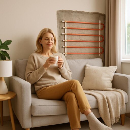 Здесь важно подчеркнуть, что комфорт — это не только температура. Отопление в стене влияет и на влажность, и на качество воздуха. Тепло, равномерно распространяясь, предотвращает появление сырости и конденсата, снижая риск плесени. В результате в доме не только тепло, но и здоровая среда для жизни.