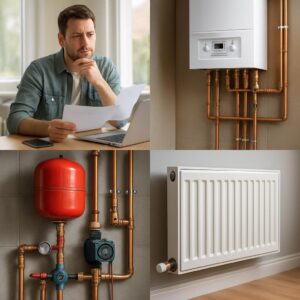 - монтажные работы: установка котла, бойлера и другого сопутствующего оборудования, труб и комплектующих;