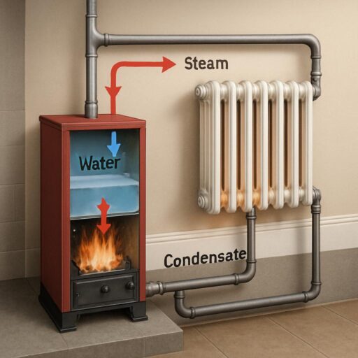 Кроме того, система не требует мощных насосов или сложной автоматики. Давление и движение пара создаются естественным образом — это делает отопление надежным и менее зависимым от сбоев электроэнергии. Такая простота снижает затраты на эксплуатацию и ремонт.